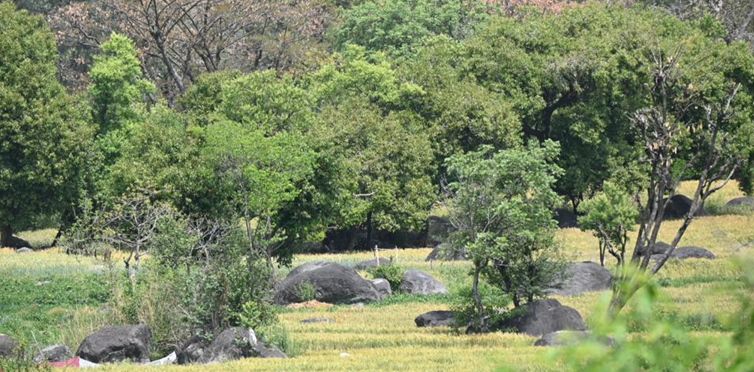 (Image 6: Glacier moraine, derived from Dhauladhar, spread across the paddy field is an integrated part of the Agricultural Landscape (Kumar, 2025))